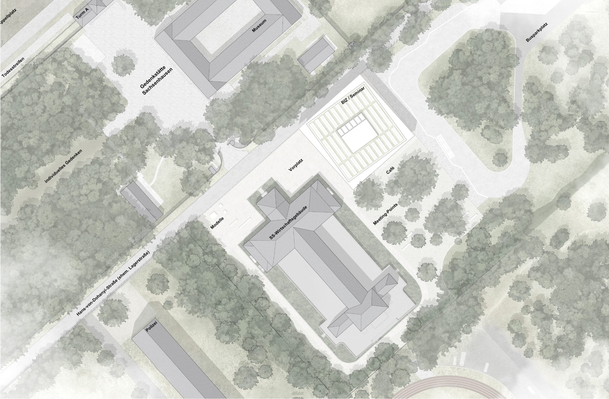 Historisches Foto: Befreite Häftlinge auf der Lagerstraße, Juni 1945, Staatsarchiv Prag
